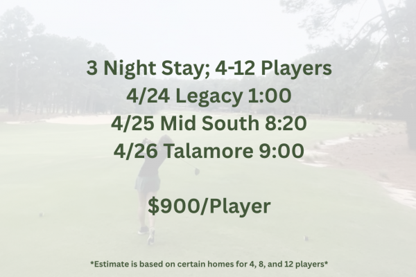 *Please Note Pricing Is Currently Estimated Based on 2025 Golf Rates. 2026 Golf Rates Will be Announced in December*